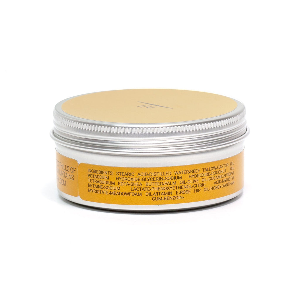- Stearic Acid, Distilled Water, Castor Oil, Glycerin, Potassium Hydroxide, Sodium Hydroxide, Beef Tallow, Shea Butter, Meadowfoam Oil, Coconut Oil, Rose-Hip Oil, Cocamidapropyl Betaine, Aloe Vera, Vitamin E, Honey, Propanediol, Myristyl Myristate, Sodium Lactate, Citric Acid