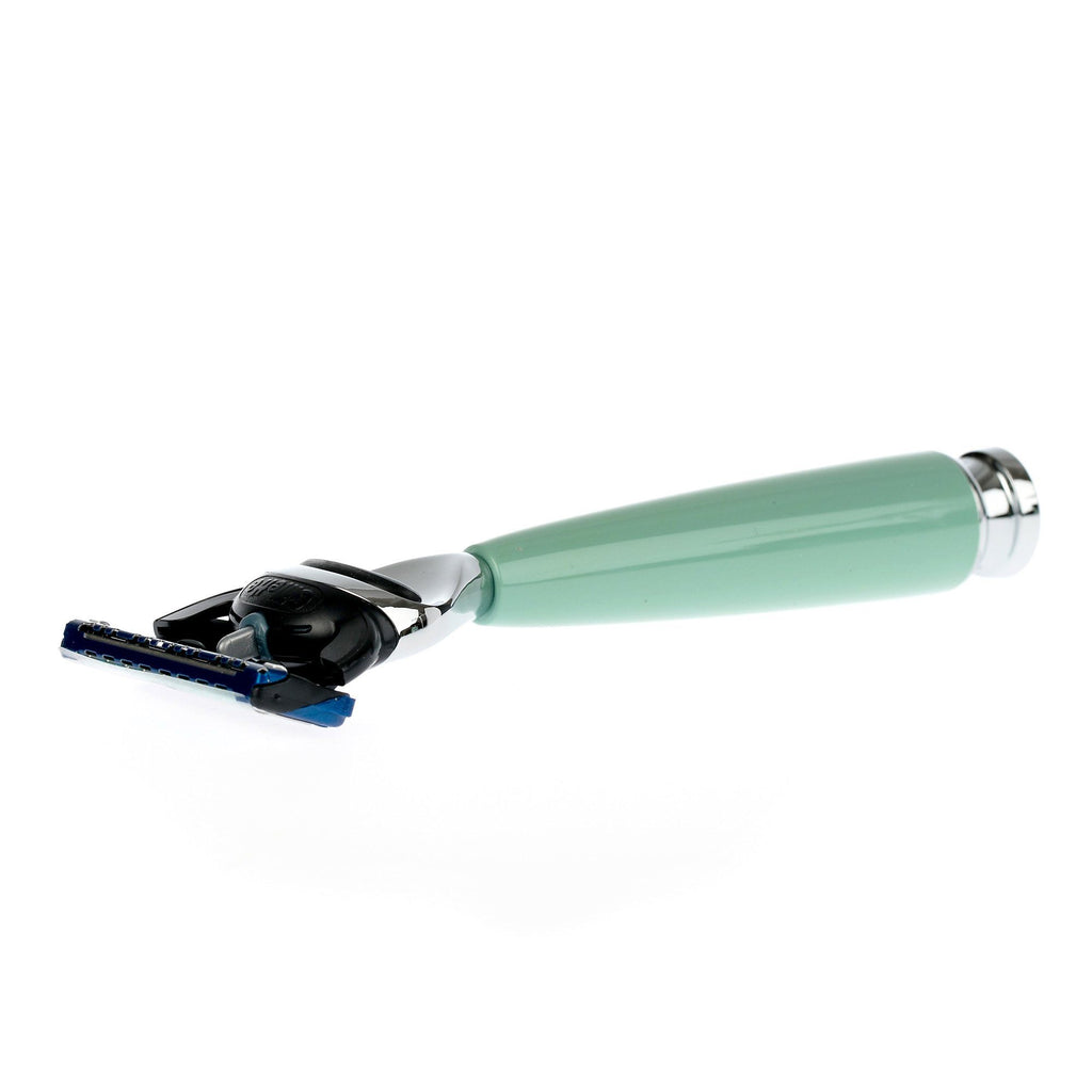 German-made, the Fendrihan 3-Piece Shaving Set with Gillette Fusion and Black Fibre Brush features comes in black, or a unique mint colour, and features chrome accents to match the style of any wet shaver.